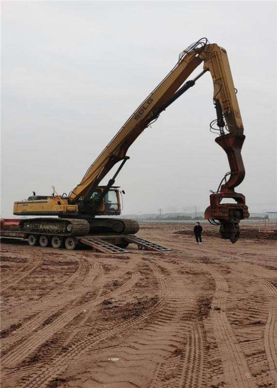 老板新添置設備----振動錘打樁機,上工地了干活了,振動錘打樁機主要用于打樁,樁的類型包括管樁、鋼板樁、鋼管樁、鋼護筒、混凝...