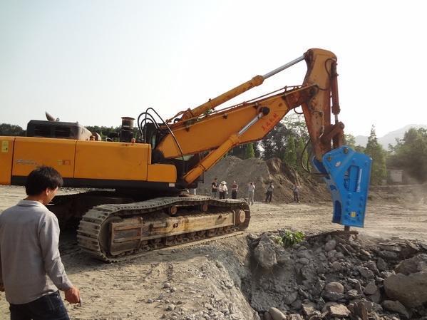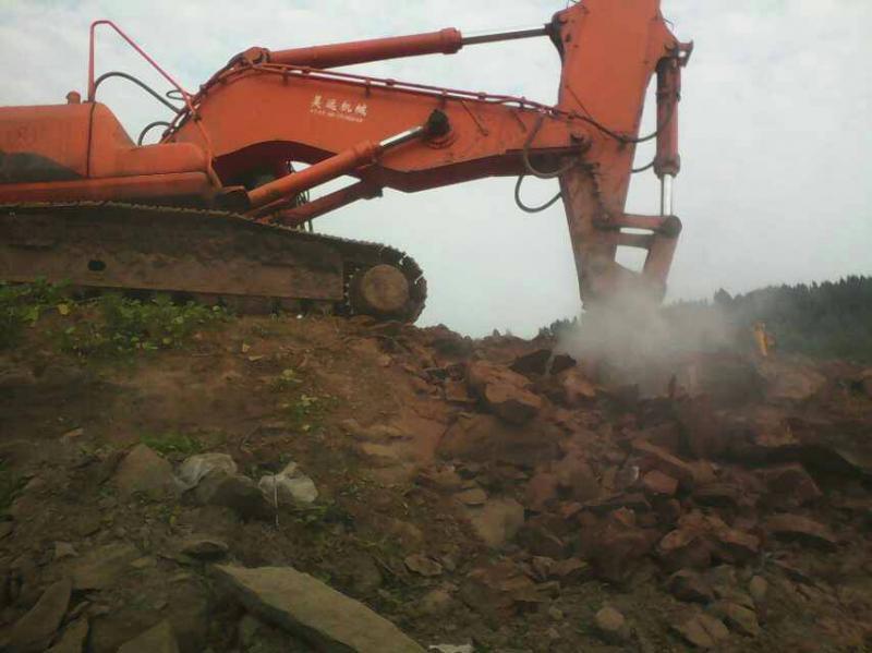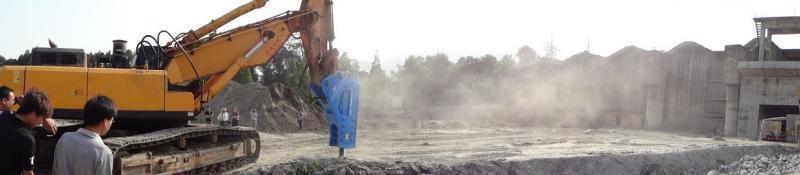 現代加強臂鉤機配175型破碎錘都江堰施工現...