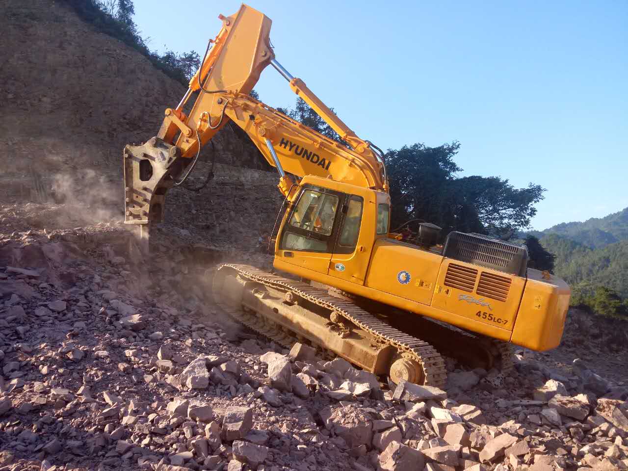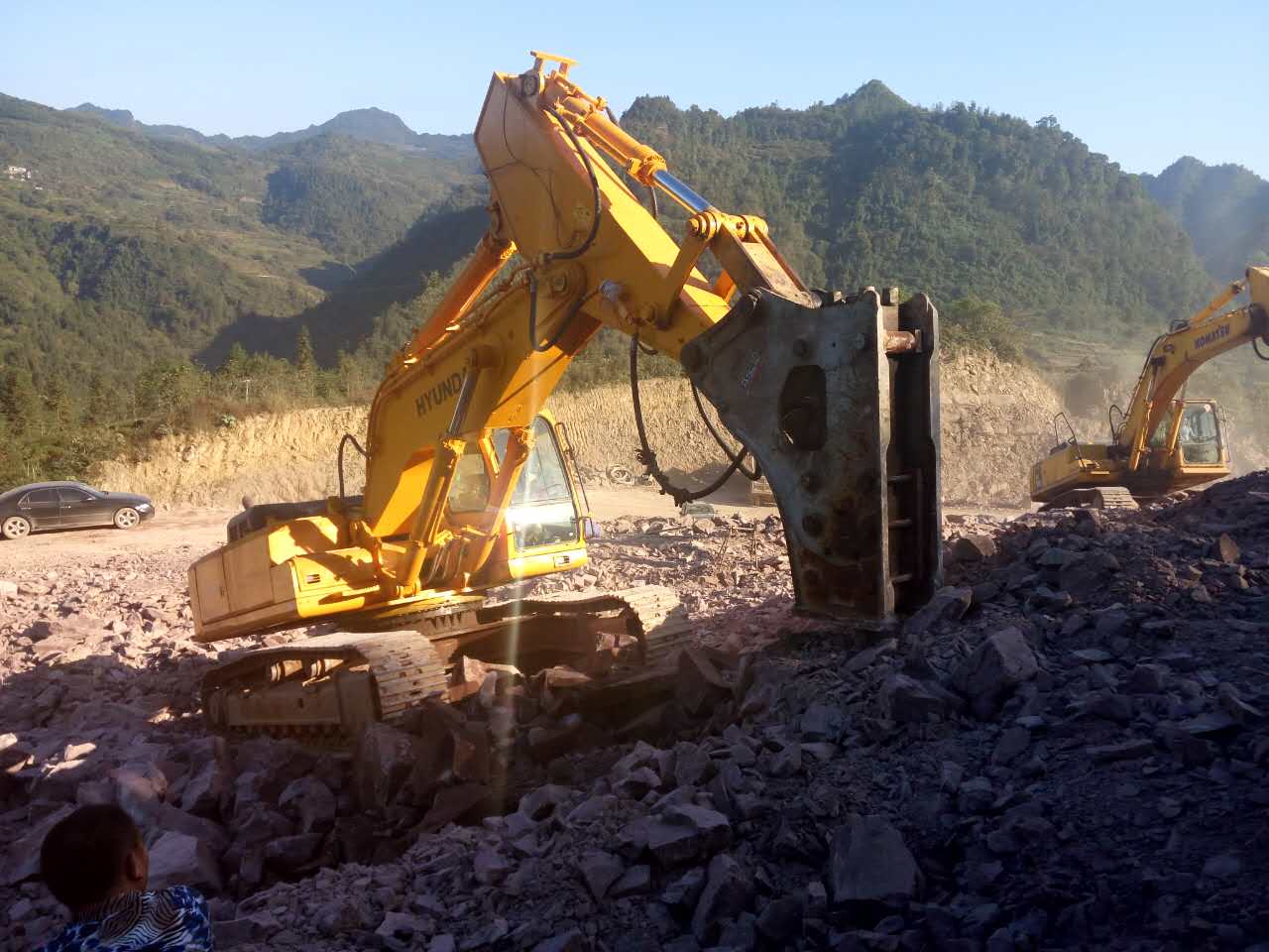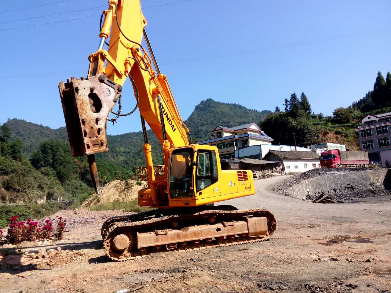 現代455型短臂配古河175型炮機正在重慶施工作業