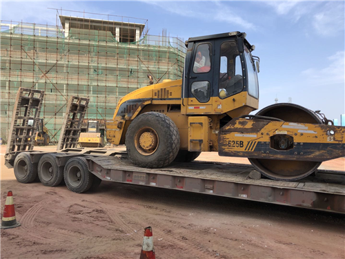 公司壓路機經過檢修保養上拖車準備上工地了!