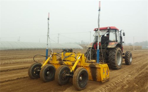 1、當激光平地機作業之后,由于一些高點的疏松土壤被刮走了,硬土層很容易在地表顯現出來,所以在進行整地的時候建議可以采用兩種方法:一種是在泡田之前對地塊旋耕一遍,這樣做的目的是為了達到農藝要求;另外一種方法是在泡田后的3到5天之后,直接用254或354等中型輪式拖拉機懸掛攪漿機進行攪漿作業。